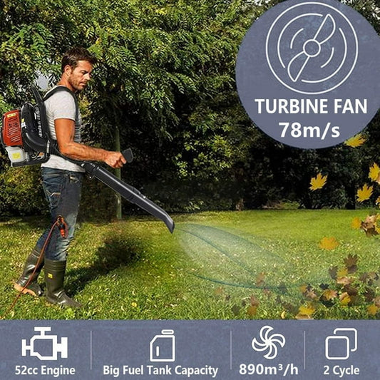 Hugrove Cordless Leaf Blower, Backpack Leaf Blower with Extention Tube, Portable Gas Powered Leaf Blower for Lawn and Garden Care, 52cc 2 Cycle Engine, Air Volume 890m³/h, LLL3712