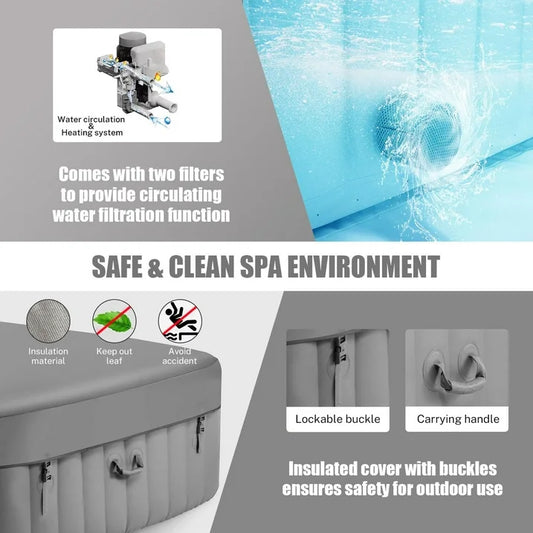 Hugrove Hot Tub, Seizeen 4-6 Person Inflatable Hot Tub Home SPA for Outdoor Patio, 910L Large Capacity, 130pcs Massage Jets, with 2 Filters, Lockable Cover, Storage Bag, Max 104℉, 73in, Gray